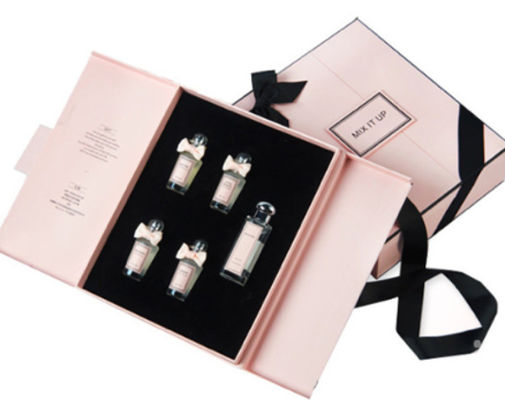 Dua Pintu Mewah Kosong Botol Parfum Kotak Hadiah Kemasan Parfum Kotak Magnetik Sampel Kotak Grosir Desain Pegangan Pita